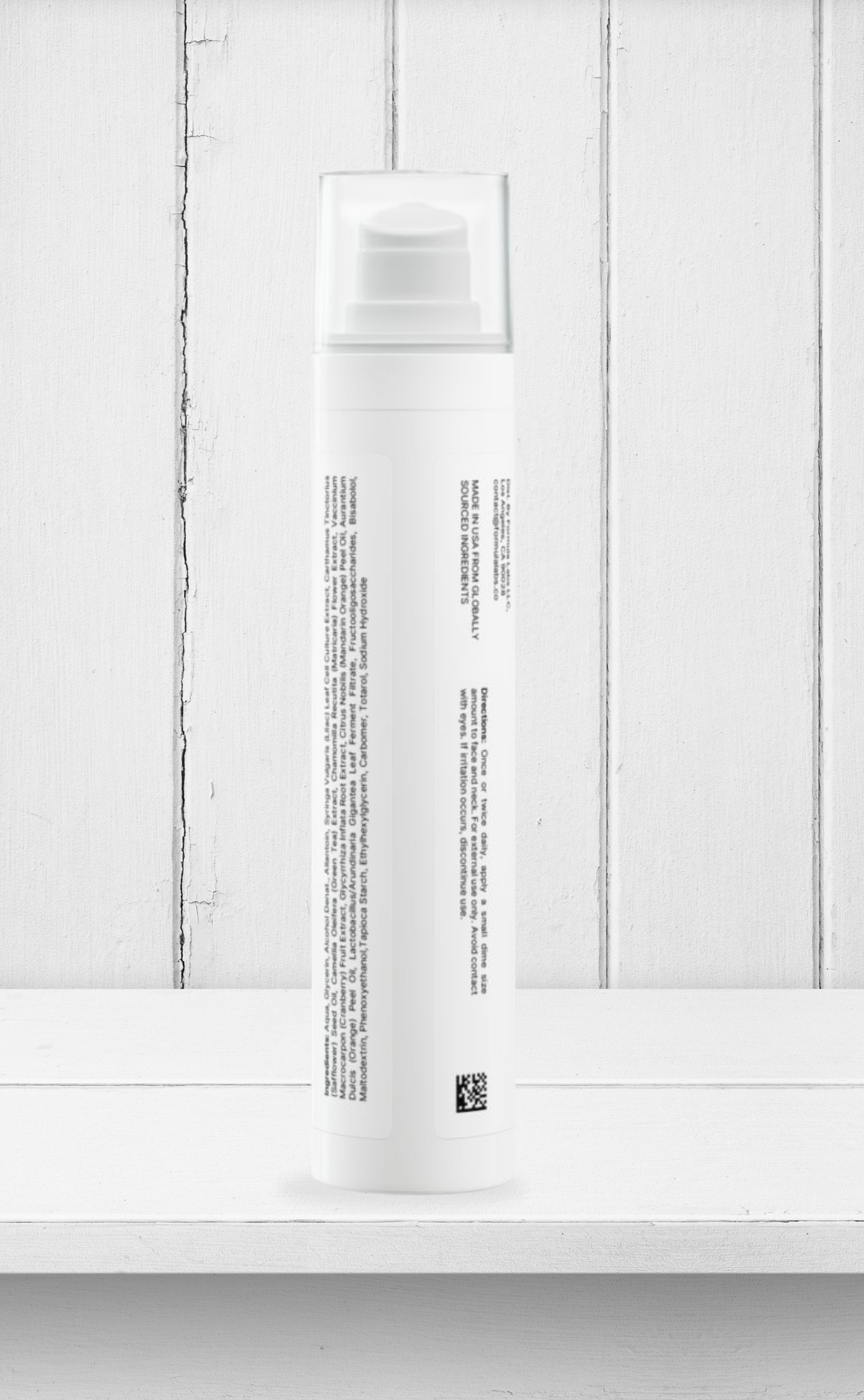 Ingredients: Aqua, Glycerin, Alcohol Denat., Allantoin, Syringa Vulgaris (Lilac) Leaf Cell Culture Extract, Carthamus Tinctorius (Safflower) Seed Oil, Camellia Oleifera (Green Tea) Extract, Chamomilla Recutita (Matricaria) Flower Extract, Vaccinium Macrocarpon (Cranberry) Fruit Extract, Glycyrrhiza Inflata Root Extract, Citrus Nobilis (Mandarin Orange) Peel Oil, Aurantium Dulcis (Orange) Peel Oil, Lactobacillus/Arundinaria Gigantea Leaf Ferment Filtrate, Fructooligosaccharides, Bisabolol, Maltodextrin, Phenoxyethanol, Tapioca Starch, Ethylhexylglycerin, Carbomer, Totarol, Sodium Hydroxide.